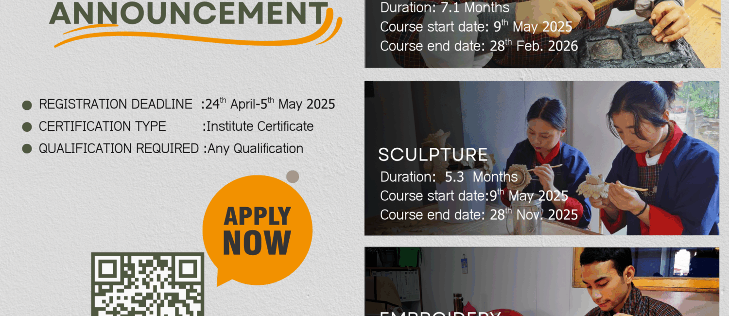 As a part of the Skills Development Program, the Ministry of Education and Skills Development (MoESD) is pleased to announce the availability of the following training program at National Institute for Zorig Chusum, Thimphu funded under MoESD as detailed below: