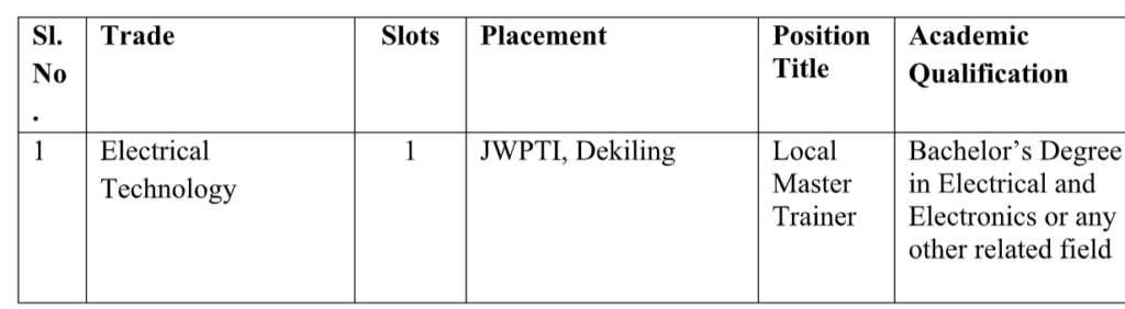 recruitment of Local Master Trainer on a contract basis as detailed below. The candidate with