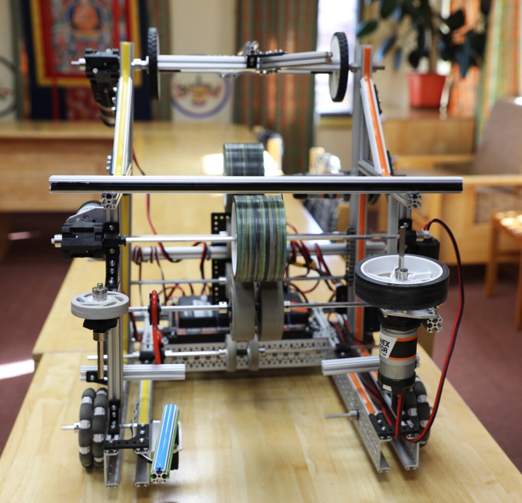 Using a standard kit of parts, the team built the robot over the course of two months. The robot is tasked with navigating autonomously, picking up or placing objects, rotating wheels to release biodiversity balls, moving items to designated zones, detecting and avoiding barriers, and performing climbing challenges.