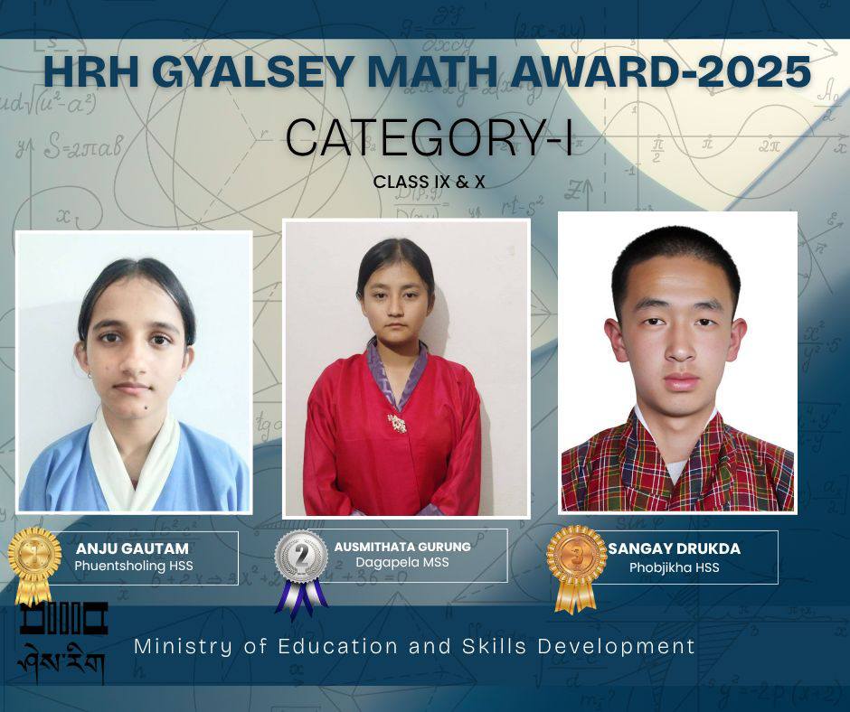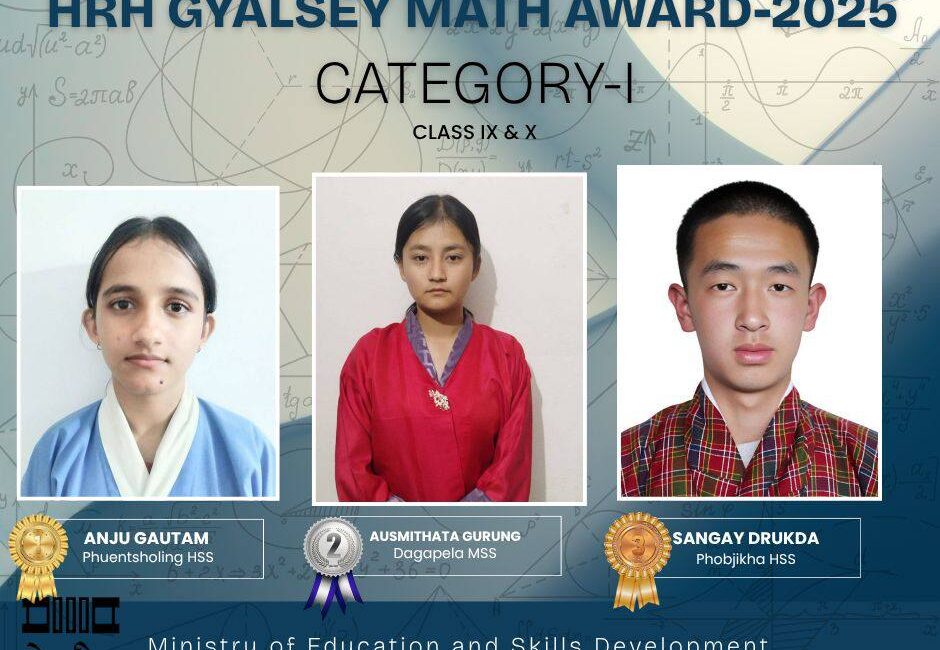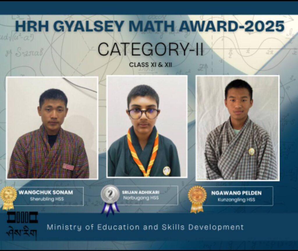 The Ministry is pleased to announce the winners of the 2025 HRH Gyalsey Annual Math Award as listed below: