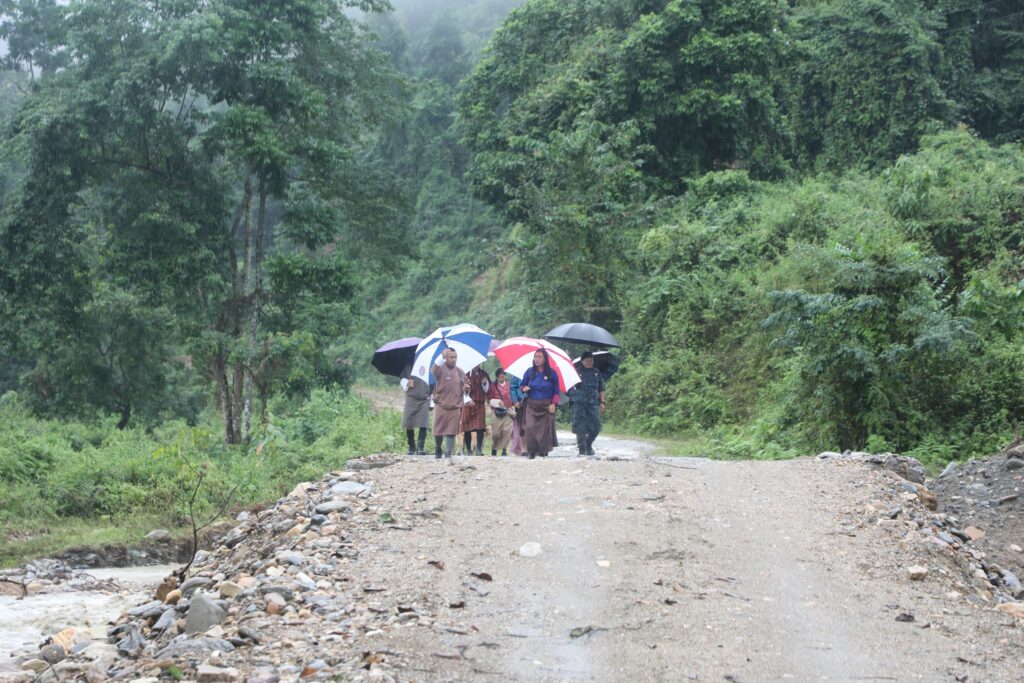 On October 31, Lyonpo accompanied by a gup and villagers visited a farm road site in Ugyentse that had recently been damaged by a landslide. She then continued her visit to Norbugang PS. On November 1, she visited the Tabadramtoe PS in Samtse and the Food Corporation of Bhutan Limited (FCBL) in Phuentsholing.