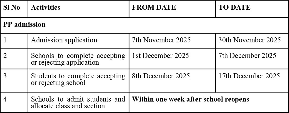 We would like to inform all the Dzongkhags/Thromdes that the application window for PP admission for the year 2026 will begin as per the attached timeline.