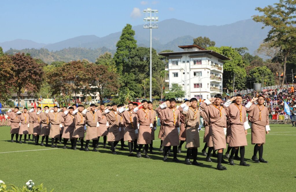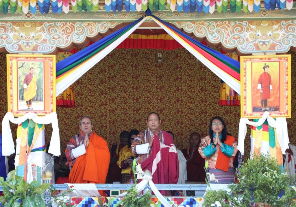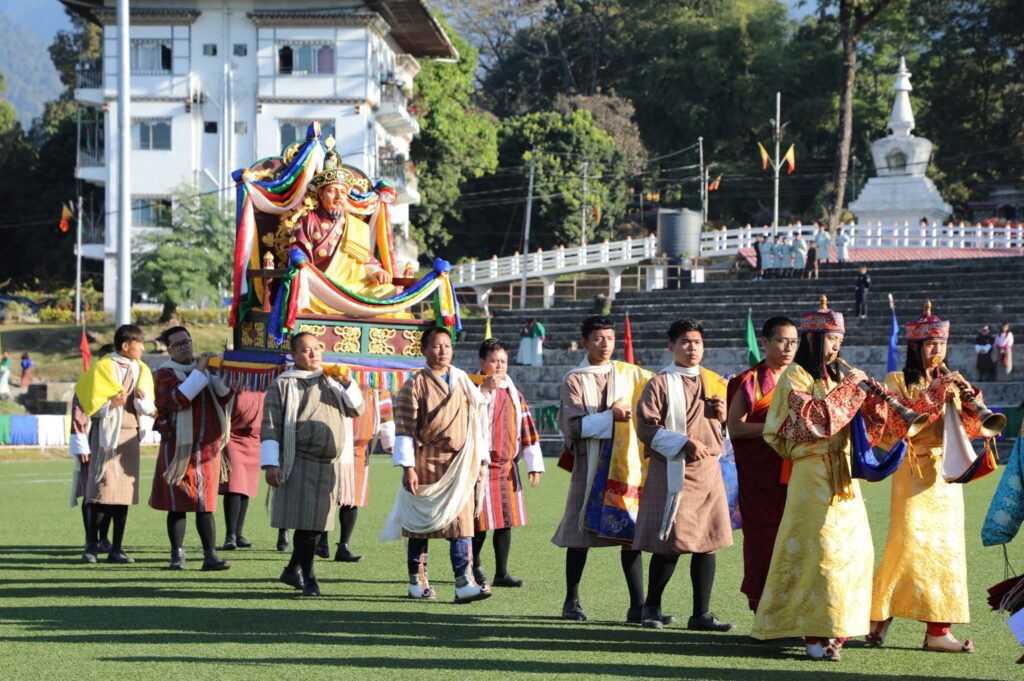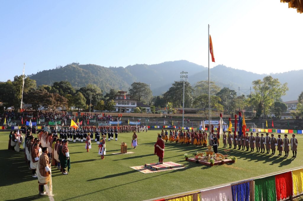 The celebration began with a sacred Chhipdrel procession followed by the traditional marchang ceremony reflecting Bhutanโs rich cultural heritage and spiritual values. A heartfelt Zhapten was offered for His Majesty The King symbolising the unwavering loyalty of the people and their prayers for continued peace and prosperity.
