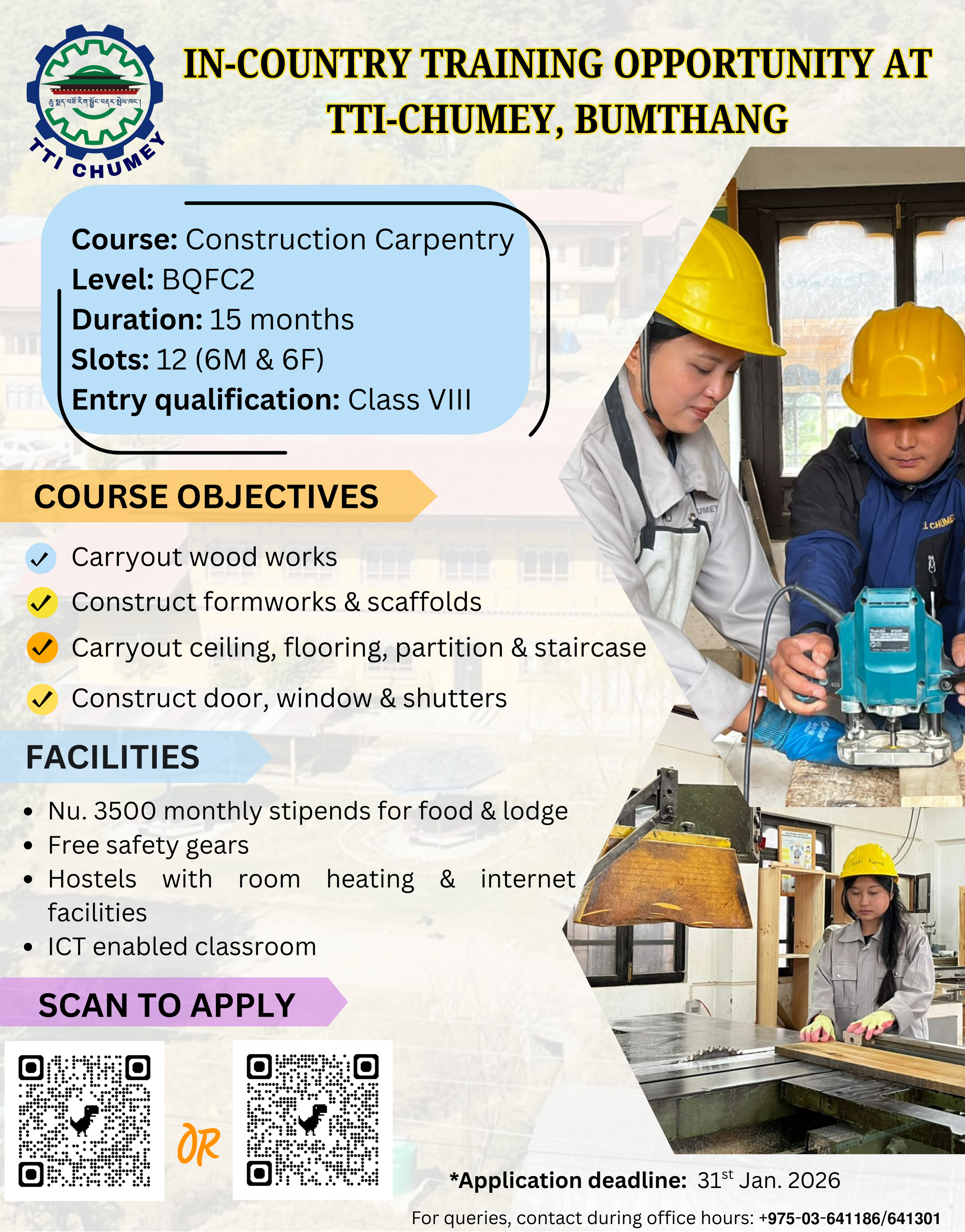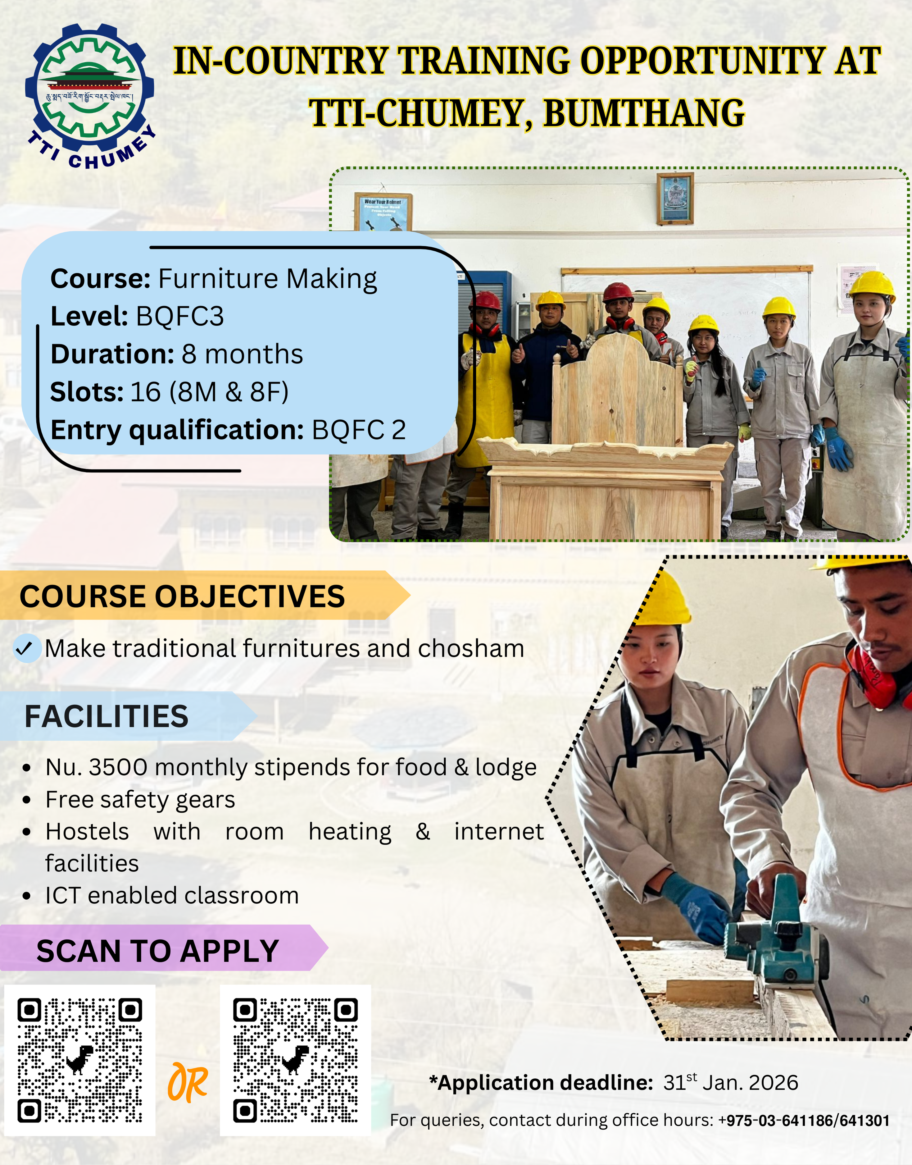 Link of training registration for trainees: https://www.blmis.gov.bt/jobseeker_page/tvetpage/2