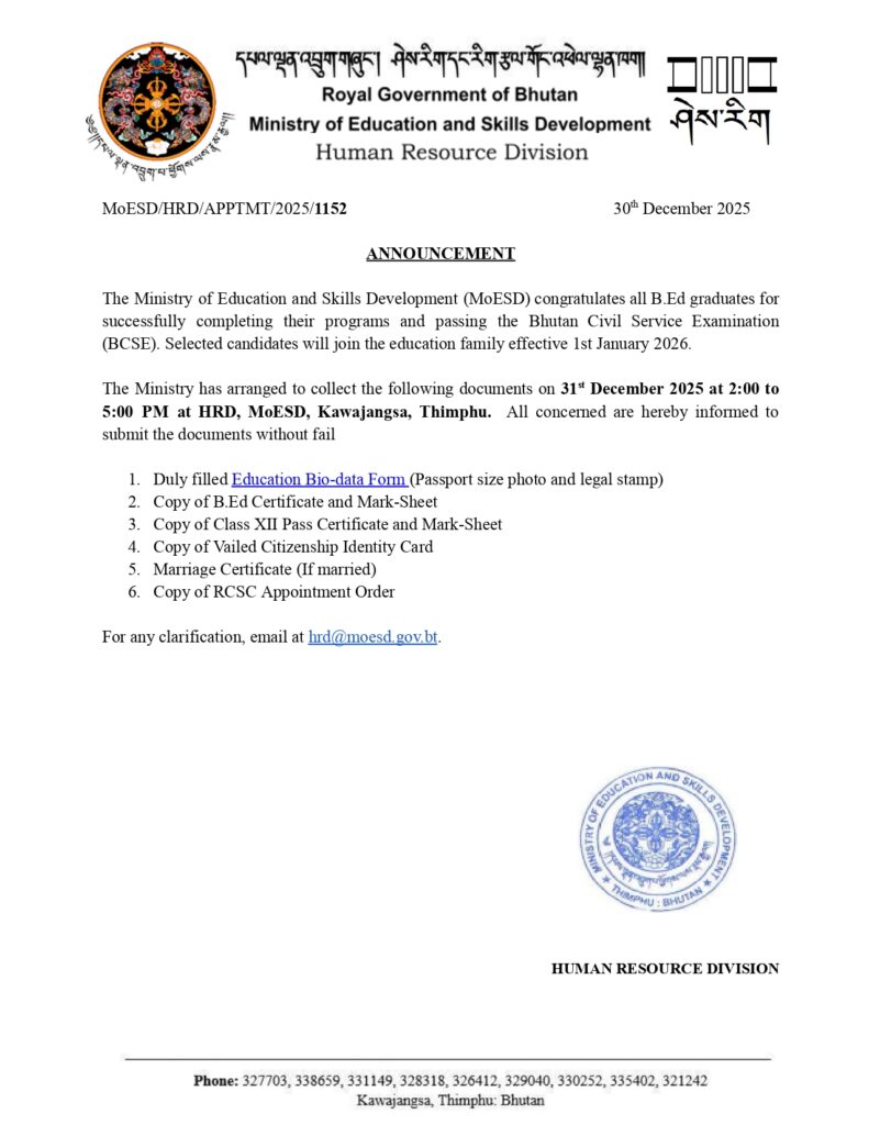 (BCSE). Selected candidates will join the education family effective 1st January 2026.