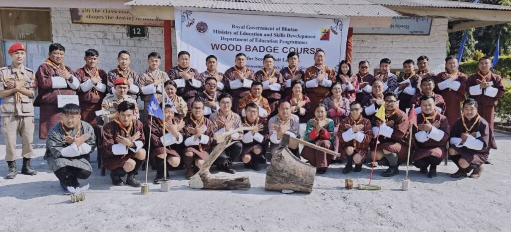 The Wood Badge Training was conducted in Nganglam LSS, Pemagatshel from January 14-20 resuming this premier adult leadership program since the COVID-19 pandemic. Organised by the Scouts and Sports Division under the Department of Education Programmes, the training brought together 30 Scout Adult Leaders from 8 Dzongkhags and 1 Thromde from the Eastern and Central Regions.