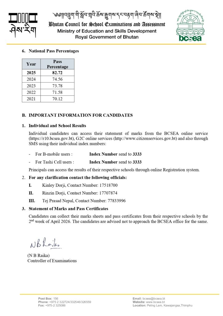 The overall pass percentage is 82.67% for year 2025 BCSE (X) examinations. The link to download the PDF version of the general information is provided here.