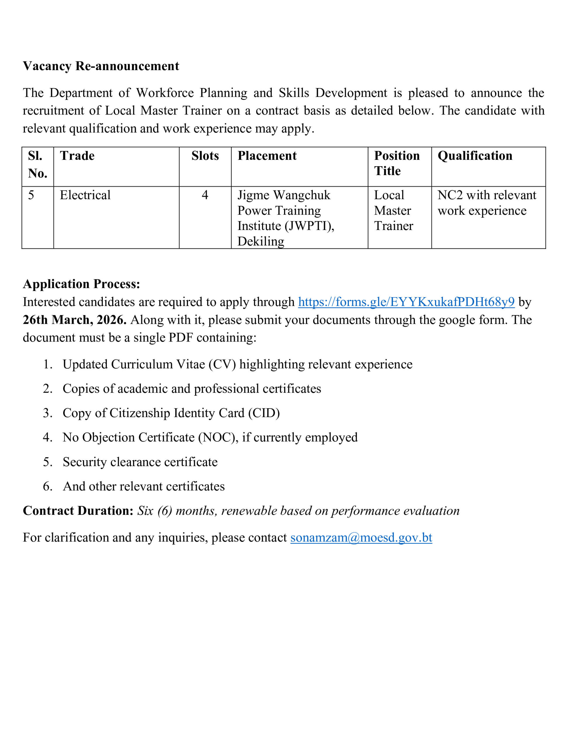 For clarification and any inquiries, please contact sonamzam@moesd.gov.bt