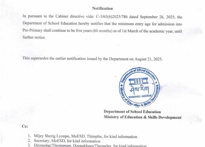 "Empowering 21st century learning rooted in Bhutanese values of tha dam-tsig ley gjudrey and guided by the development philosophy of Gross National Happiness (GNH),