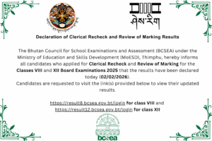 https://result8.bcsea.gov.bt/login for class VIII and https://result12.bcsea.gov.bt/login for class XII.
